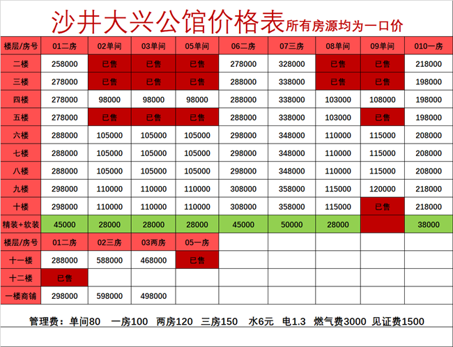 单间:8.8万/套起 租金800元/月